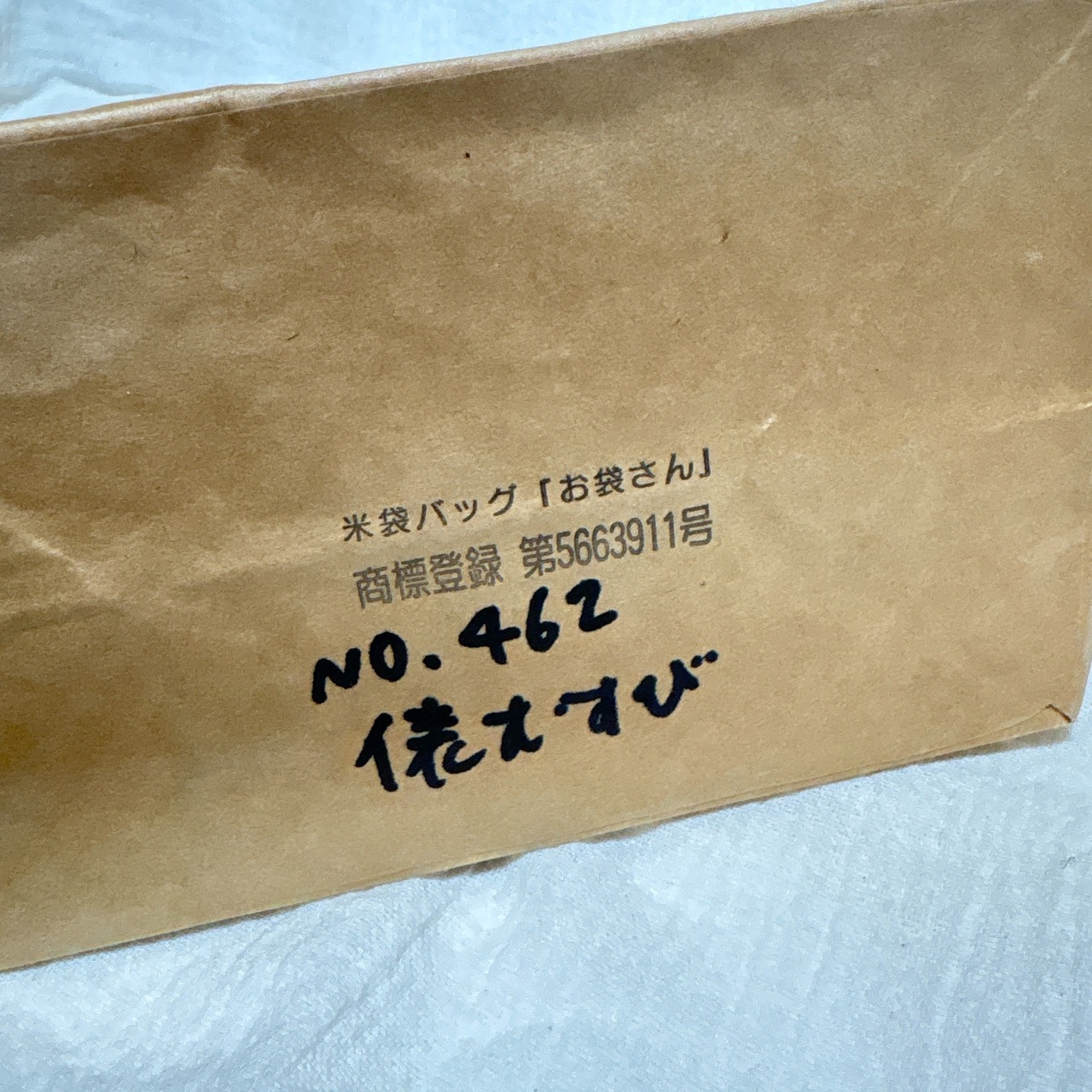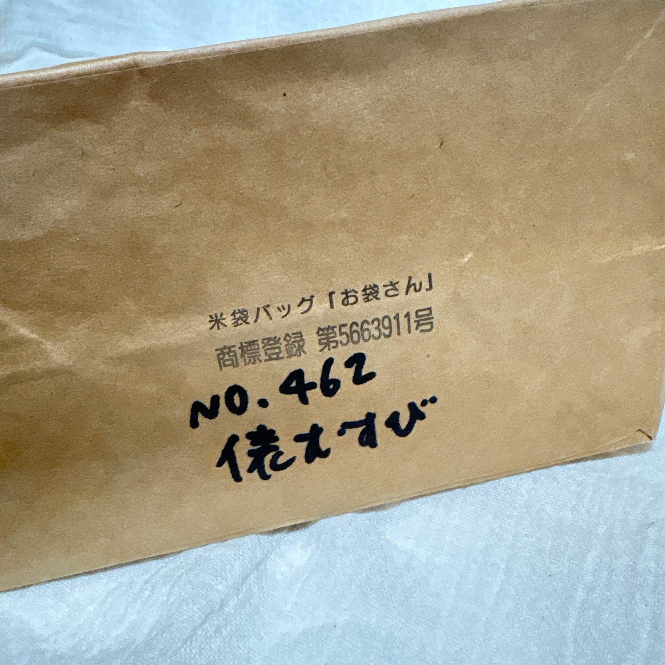 再利用した米袋を使用しているため、シワなどがございます。