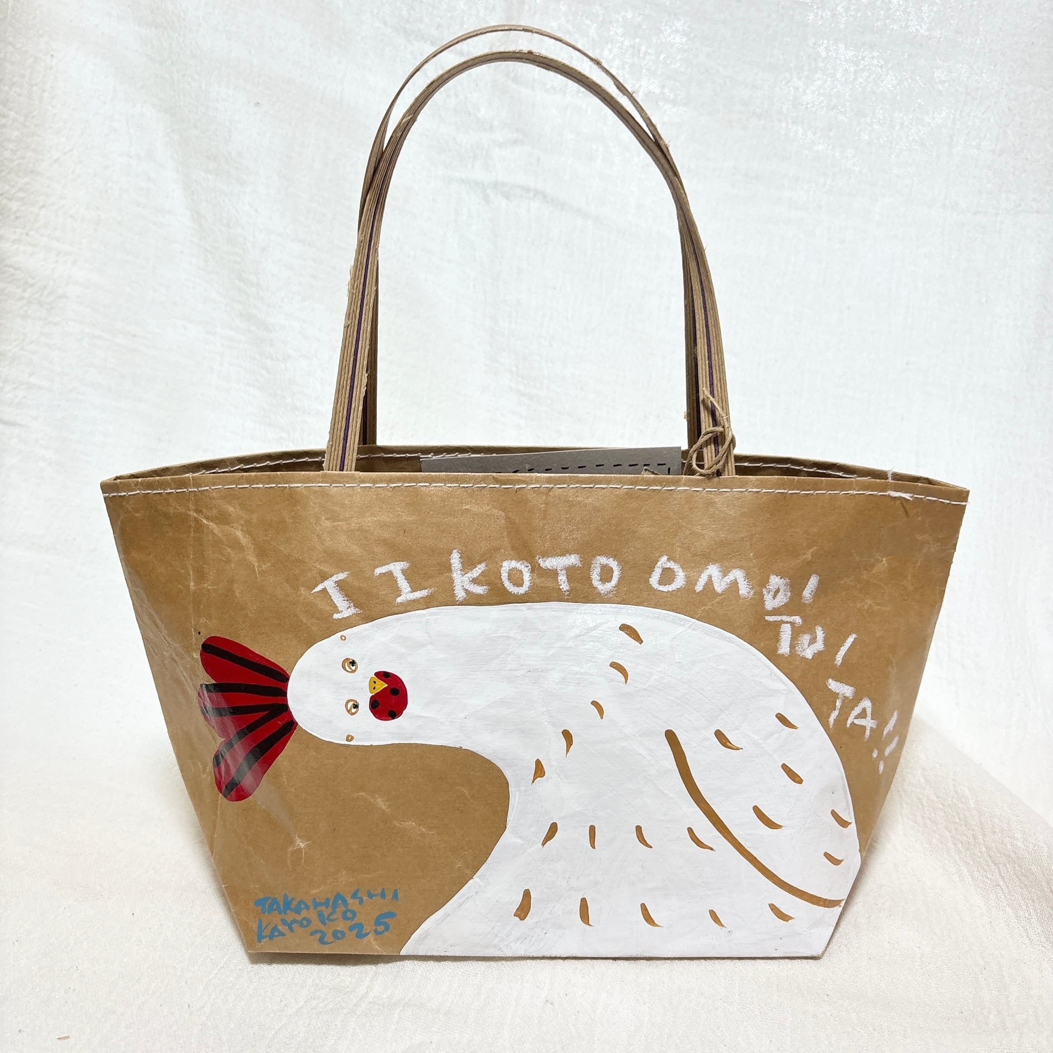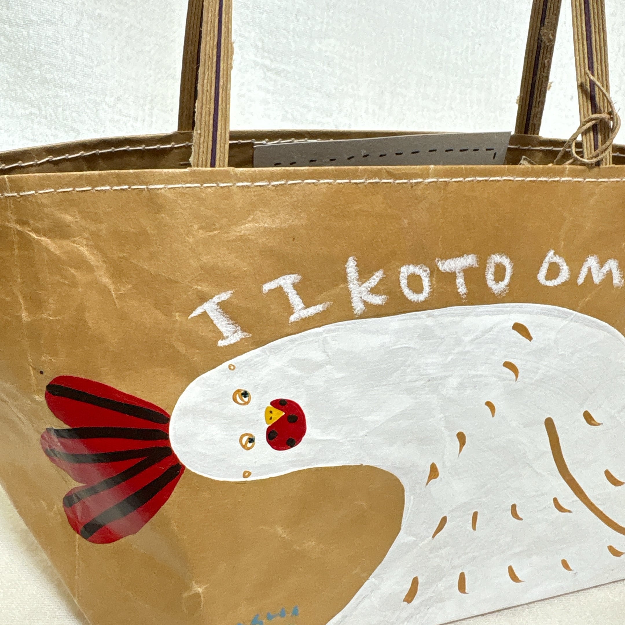米袋で作られた米袋で作られた[米袋バッグお袋さん]にイラストを1枚1枚描いています。