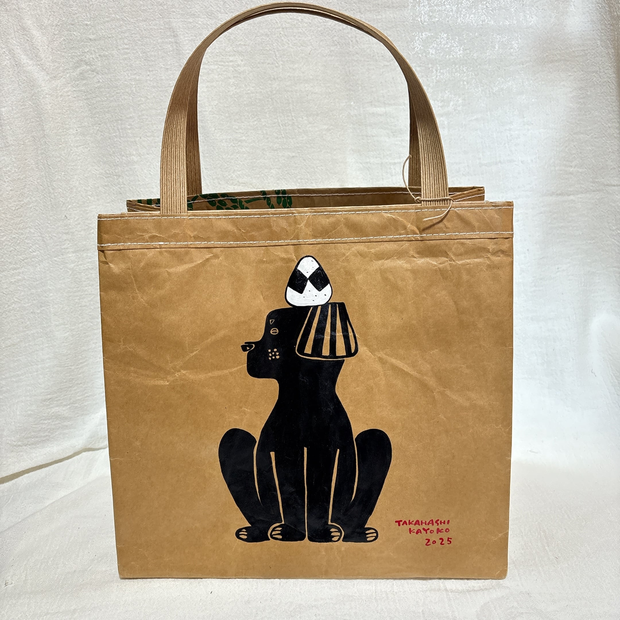 米袋で作られた米袋で作られた[米袋バッグお袋さん]にイラストを1枚1枚描いています。